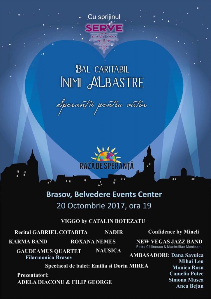 Asociaţia „Rază de Speranţă“ai cărei beneficiari sunt peste 100 de copii și tineri, persoane diagnosticate cu tulburări din spectrul autist, alături de grupul de inițiativă „Papuci pentru copii”, organizează cea de-a patra ediție a evenimentului caritabil “Inimi albastre”. Balul este dedicat cauzei copiilor și a tinerilor cu nevoi speciale si va avea loc vineri, 20 octombrie, la Belvedere Events Center.